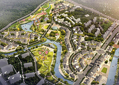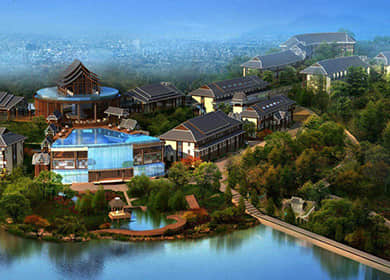 小鎮(zhèn)聚落景觀,多指小鎮(zhèn)居民生活的聚居點(diǎn),包括居住的建筑,與生活相關(guān)的道路、綠化、水系、公共活動(dòng)空間等生活設(shè)施等。康養(yǎng)小鎮(zhèn)設(shè)計(jì)時(shí),應(yīng)積極保護(hù)并優(yōu)化老街古巷等傳統(tǒng)小鎮(zhèn)建筑,結(jié)合當(dāng)?shù)刈匀簧鷳B(tài)景觀,合理建設(shè)養(yǎng)生度假酒店、養(yǎng)老護(hù)理中心、頤樂(lè)學(xué)院等功能建筑,合理規(guī)劃水系、道路及綠化,充分展現(xiàn)小鎮(zhèn)的生態(tài)、特色、自然。